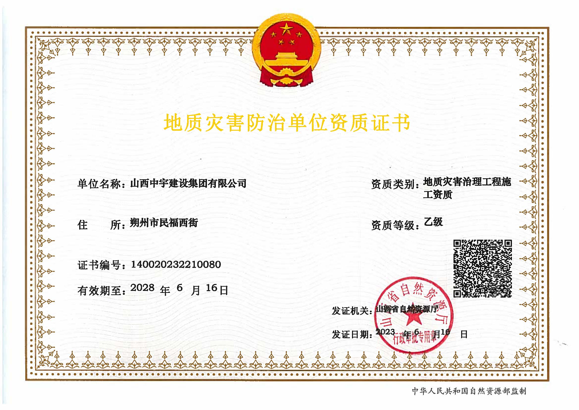 地質災害治理工程施工乙級資質